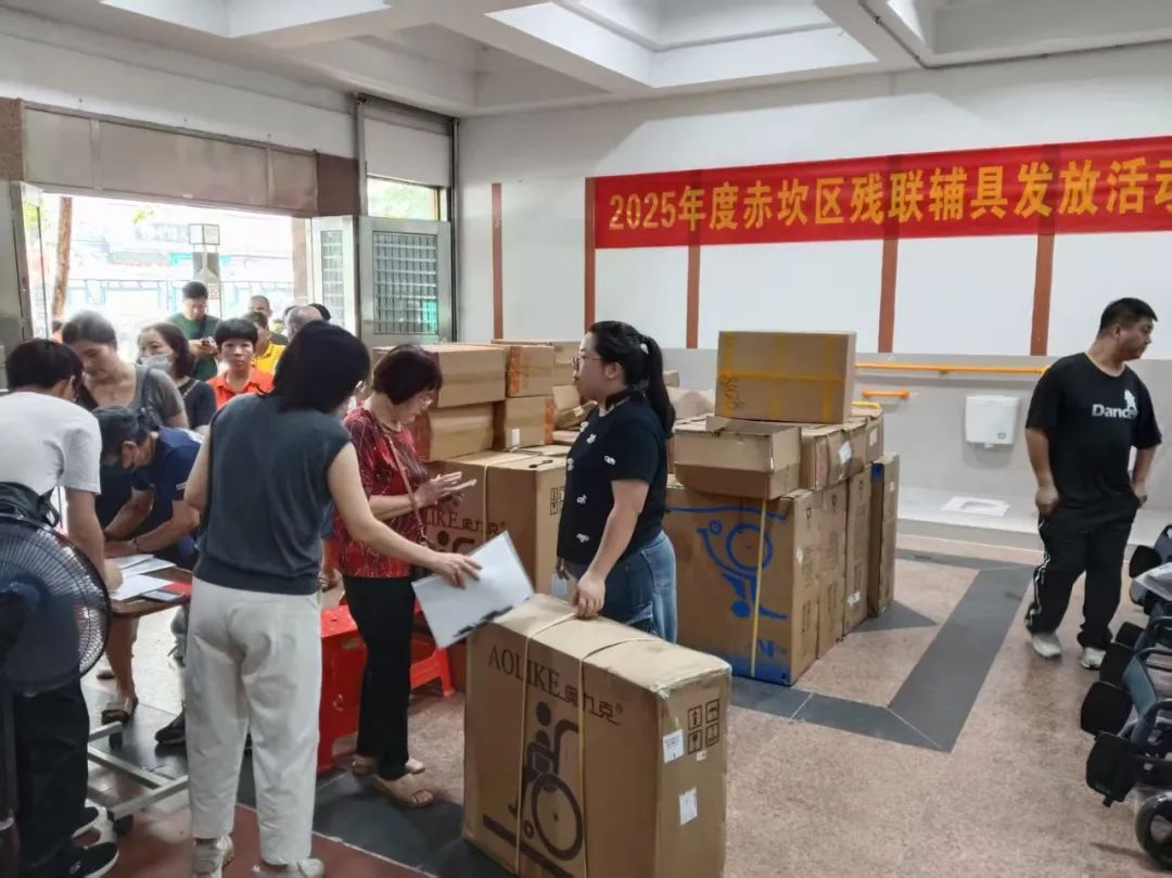 为满足赤坎区残疾人的康复需求,减轻家庭照护负担,助力解决出行、生活等难题,7月2日,2025年赤坎区残联辅具发放活动在市残疾人辅助器具服务中心辅具展示大厅举行,现场为赤坎区55名残疾人免费发放了适合使用的辅助器具。