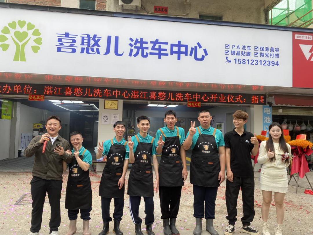 3月15日,湛江市首家由喜憨儿(心智障碍者)为主要员工的洗车店正式开业。市残联、市残疾人就业服务中心、市特殊教育学校、赤坎区残联等有关负责同志,喜憨儿洗车中心创始人、湛江市曙光孤独症家长互助中心代表及喜憨儿家属出席开业剪彩仪式,共同见证了这一重要时刻。